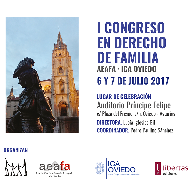 Los días 6 y 7 de julio de 2017 se celebrará el I Congreso de Derecho de Familia Oviedo 2017, organizado por el ICA Oviedo, AEAFA y Libertas Ediciones.