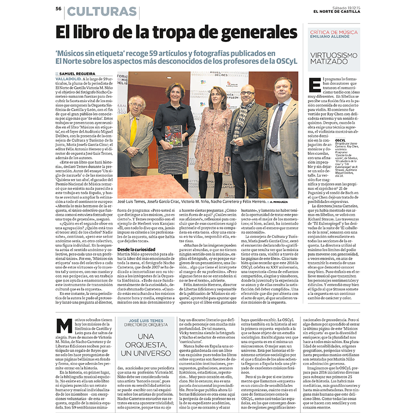 Tras el éxito de la presentación del libro «Músicos sin etiqueta» el pasado día 18 en el foyer del Auditorio Miguel Delibes de Valladolid, la sección ‘Culturas’ del Norte de Castilla